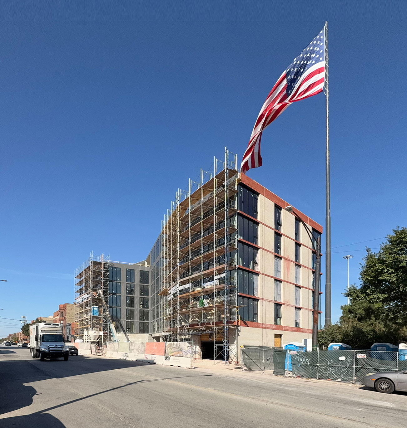 Located on the edge of the prominent West Town neighborhood of Chicago, this residential project presents a prismatic form that responds to its surroundings and its irregular site, resulting in a cohesive blend of historic and modern. Both the challenges and successes of this development stem from its singular location between the famous Fulton Market corridor, an adjacent early 20th Century streetscape, and the highly visible access ramp to the adjacent expressway.